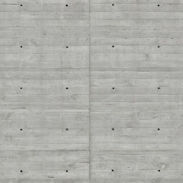 polished finish, trowel finish, continuous pours and joints, graining wood texture to imitate formwork, can be white, gray or pigmented in any colors.